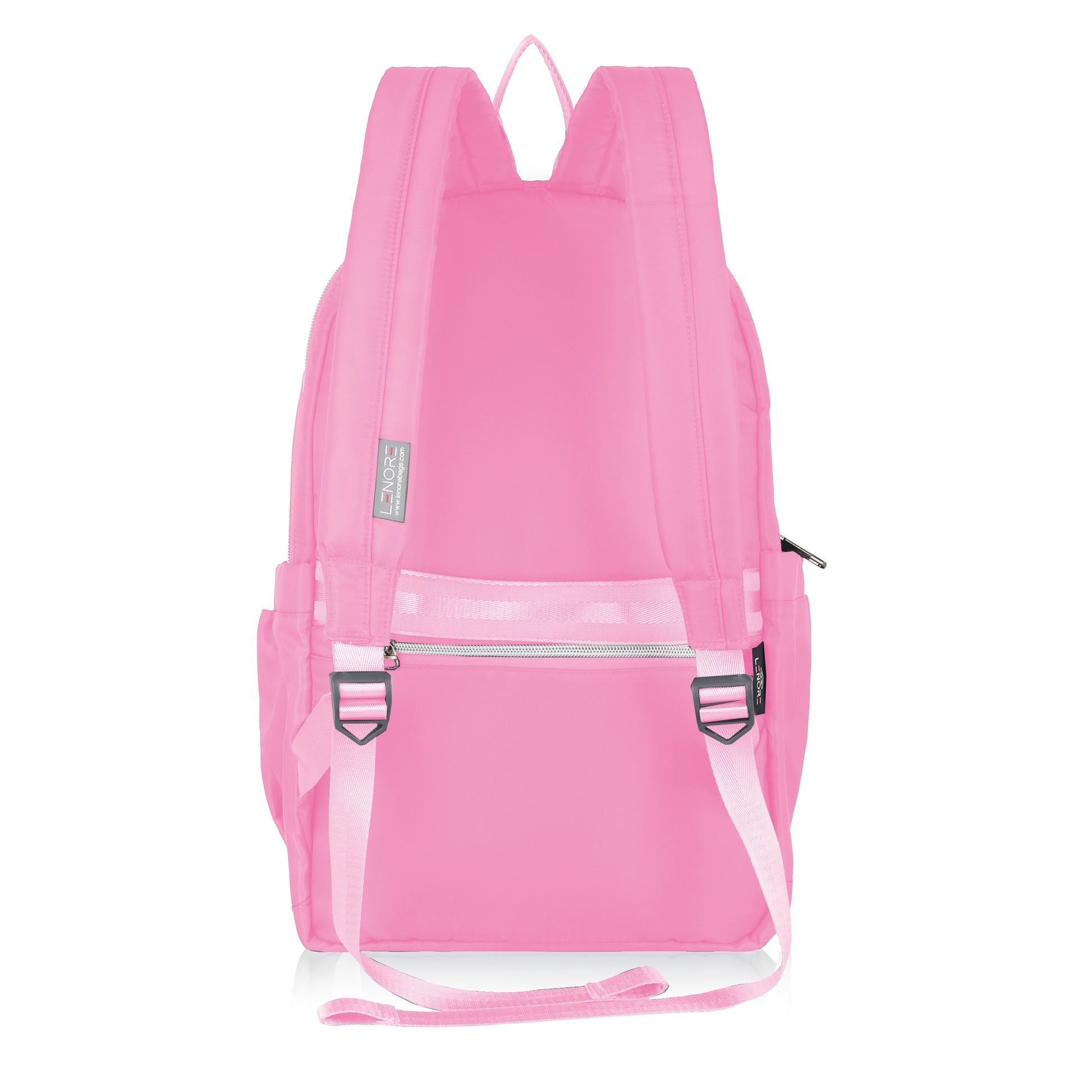 Lenore College Backpack 708 is a smart blend of style and functionality, perfect for students and professionals. It comes with 2 main compartments—a dedicated laptop sleeve for up to 14.6” laptops and a spacious section with an organizer pocket for books, tiffin, and essentials. The front quick-access pocket, hidden back pocket, and 2 side bottle holders add everyday convenience. Designed with a trolley strap and padded shoulder straps, it ensures comfort and ease whether you’re on campus, commuting, or traveling.