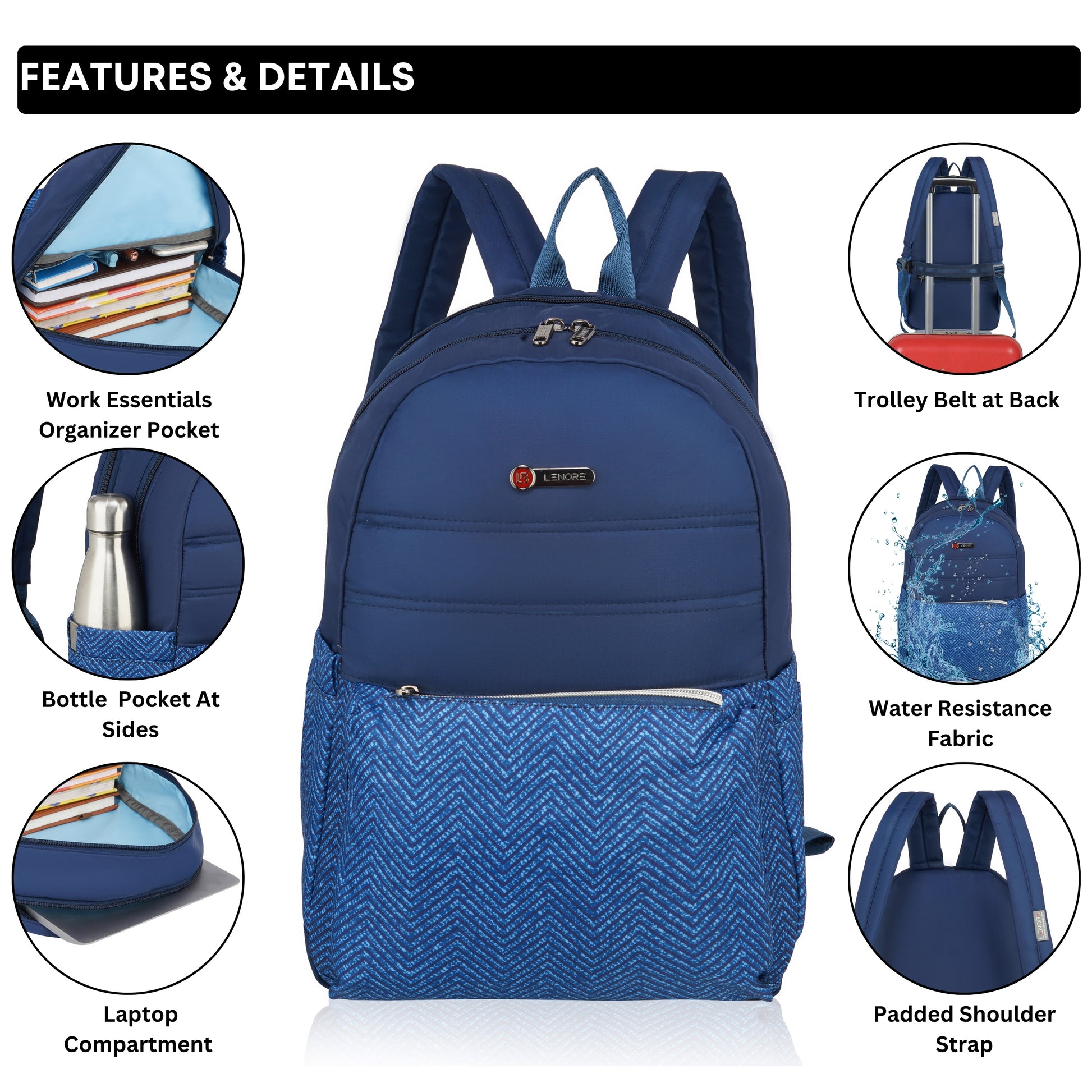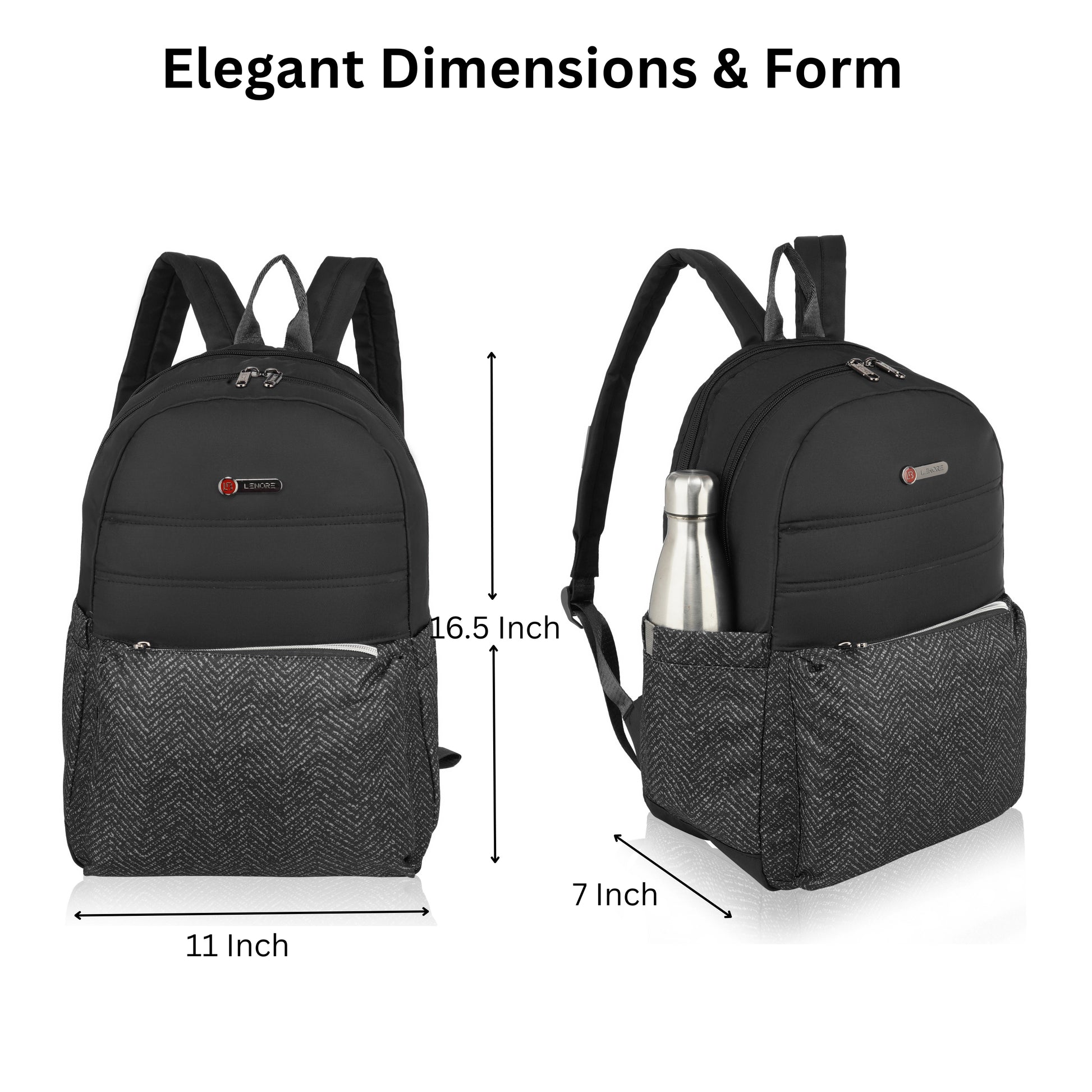 Lenore College Backpack 710 is a smart blend of style and functionality, perfect for students and professionals. It comes with 2 main compartments—a dedicated laptop sleeve for up to 14.6” laptops and a spacious section with an organizer pocket for books, tiffin, and essentials. The front quick-access pocket, hidden back pocket, and 2 side bottle holders add everyday convenience. Designed with a trolley strap and padded shoulder straps, it ensures comfort and ease whether you’re on campus, commuting, or traveling.
