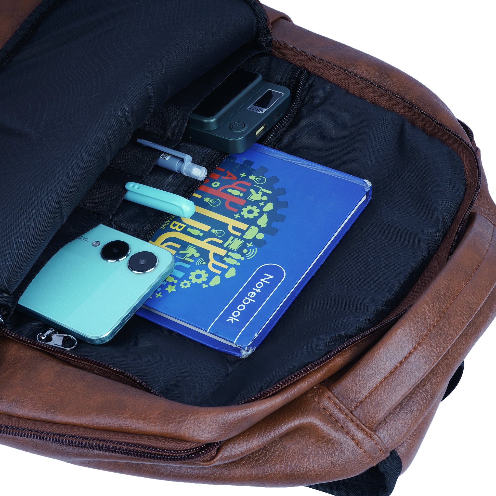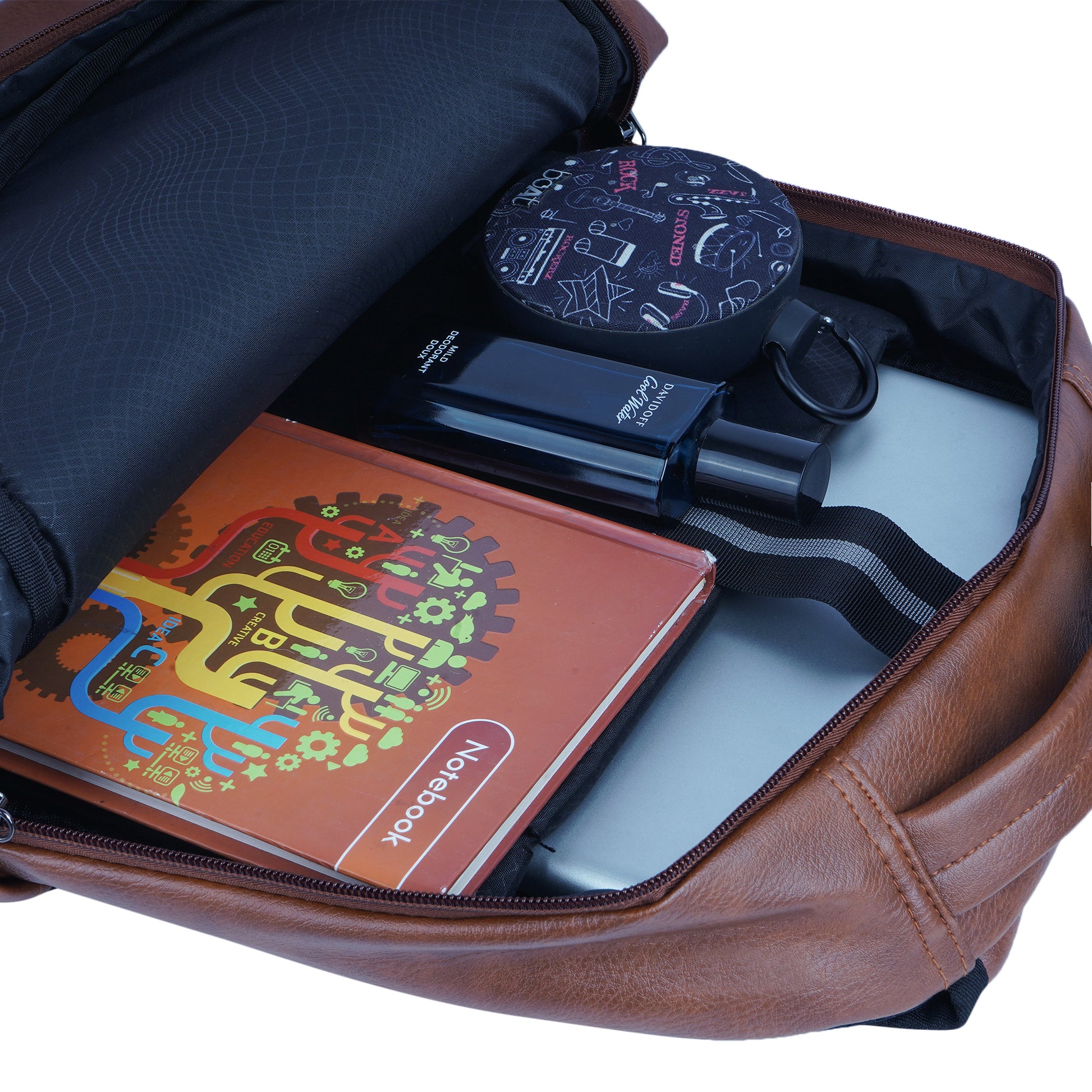 It has 2 main compartments, 1st with organizer 2nd for your files, documents or any other items like tiffin. In front there is 1 other pocket for easy access items. There are 2 pockets for bottle. Mesh padding on back & shoulder straps for superior comfort to reduce the load on the shoulders.