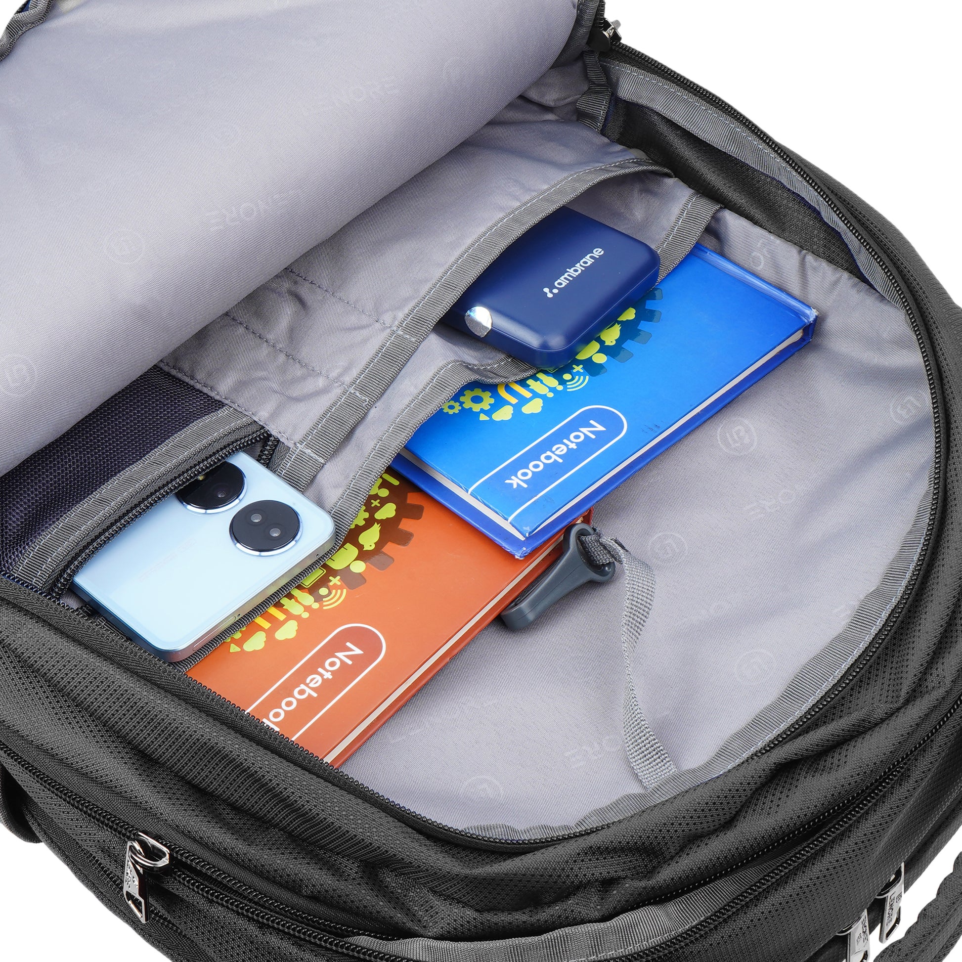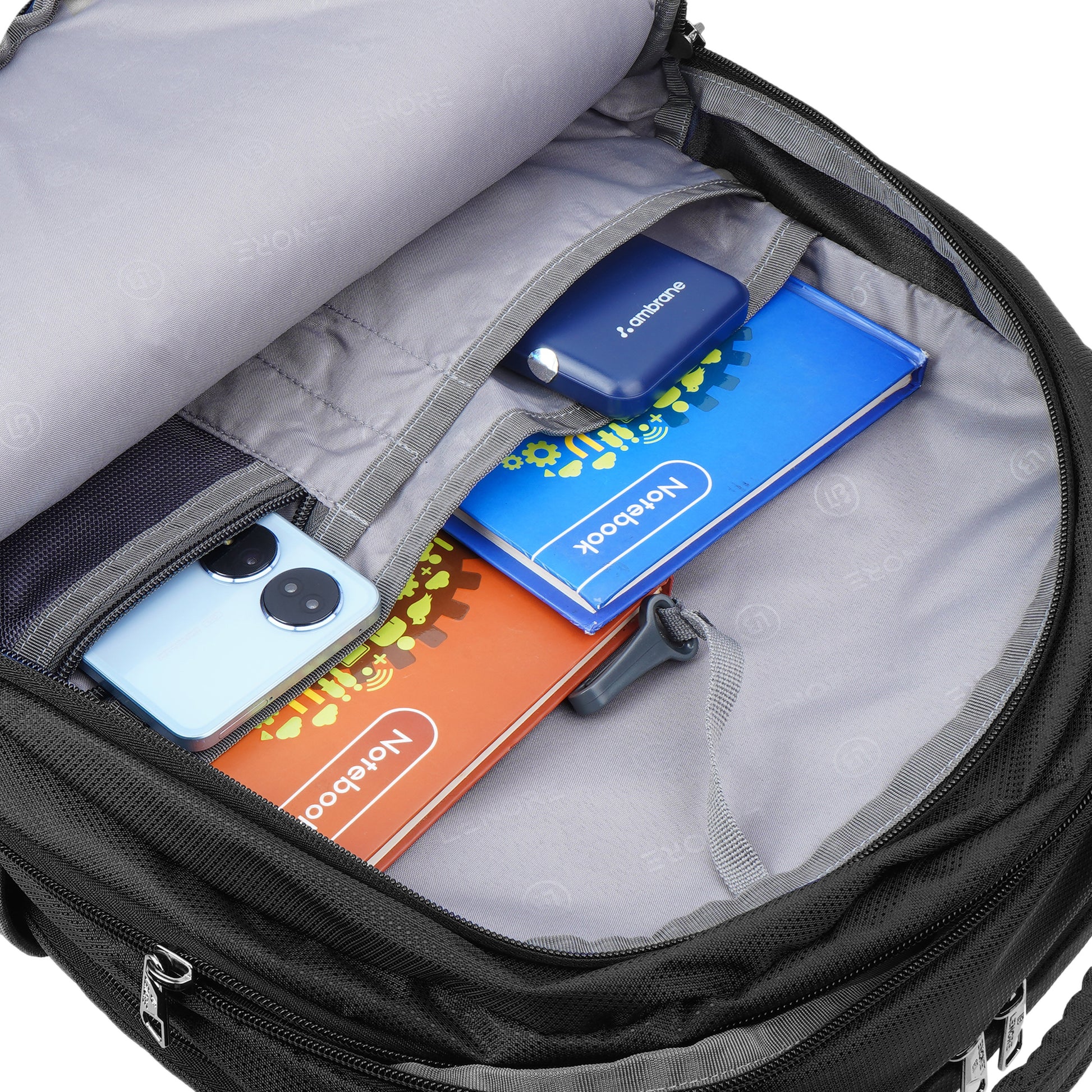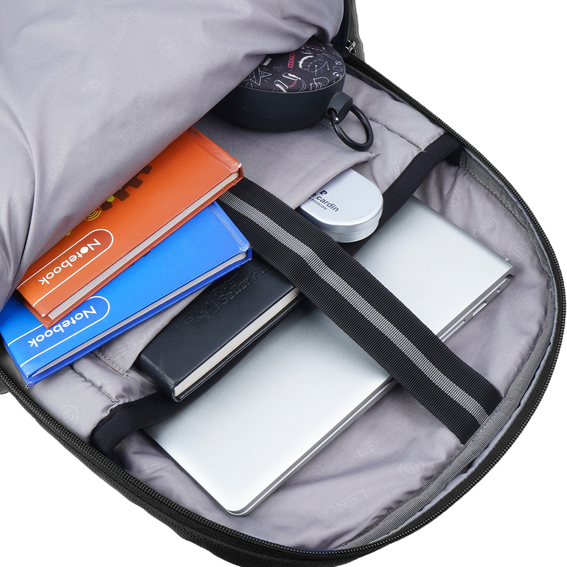 It has 3 main compartments, 1st with organizer 2nd for your files, documents or any other items like tiffin and the 3rd with padded Laptop and Tab sleeve (max size 15.6 inches). In front there are 2 other pockets for easy access items. There are 2 pockets for bottle. Mesh padding on back & shoulder straps for superior comfort and Suspension straps to reduce the load on the shoulders. Include a rain cover to protect the backpack with dedicated pocket at bottom. Read Less