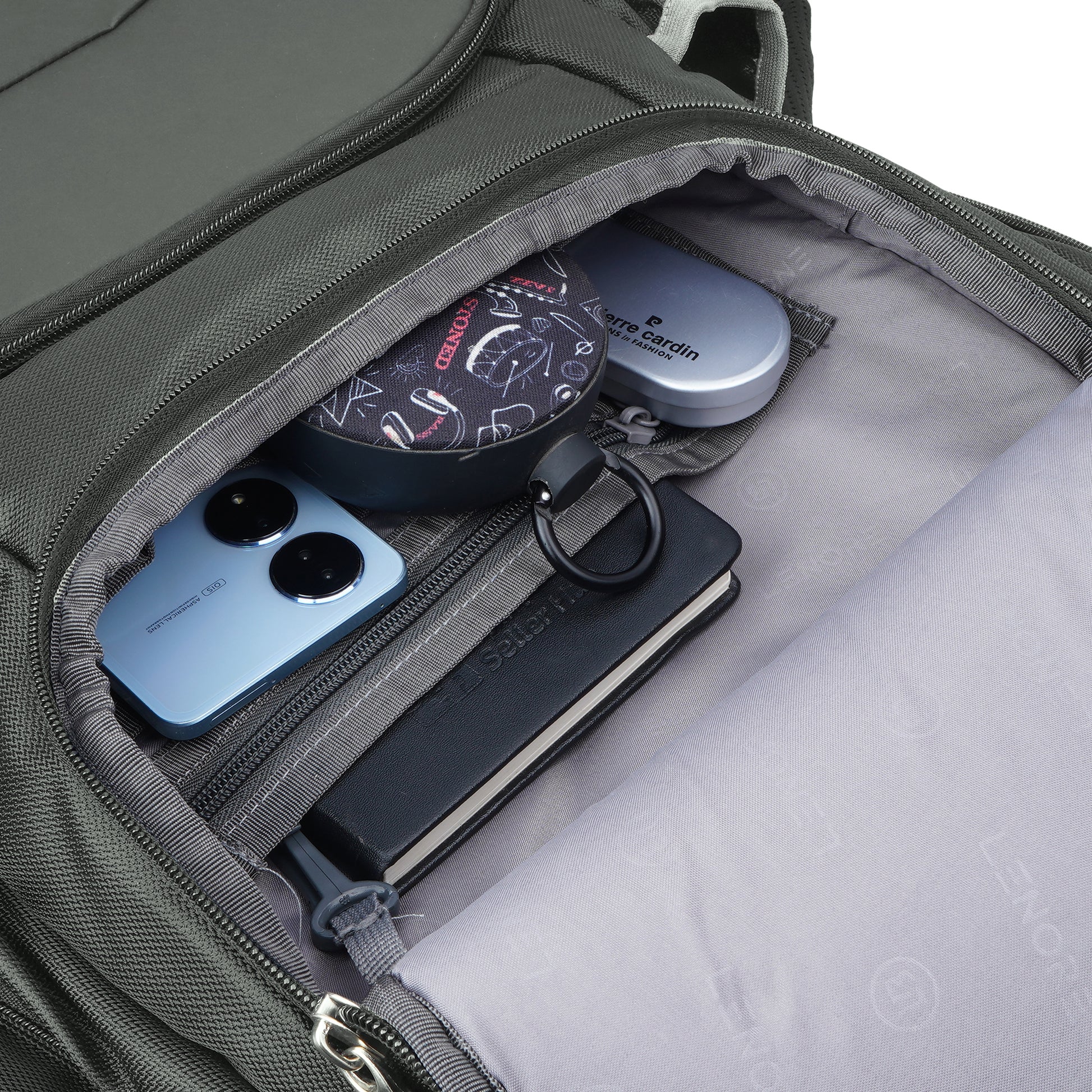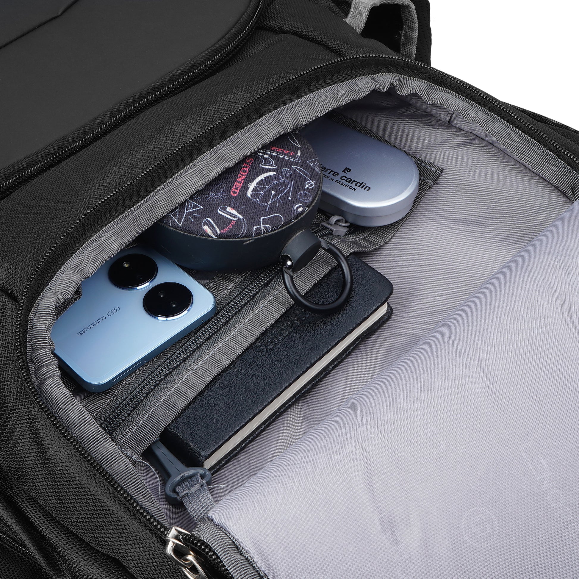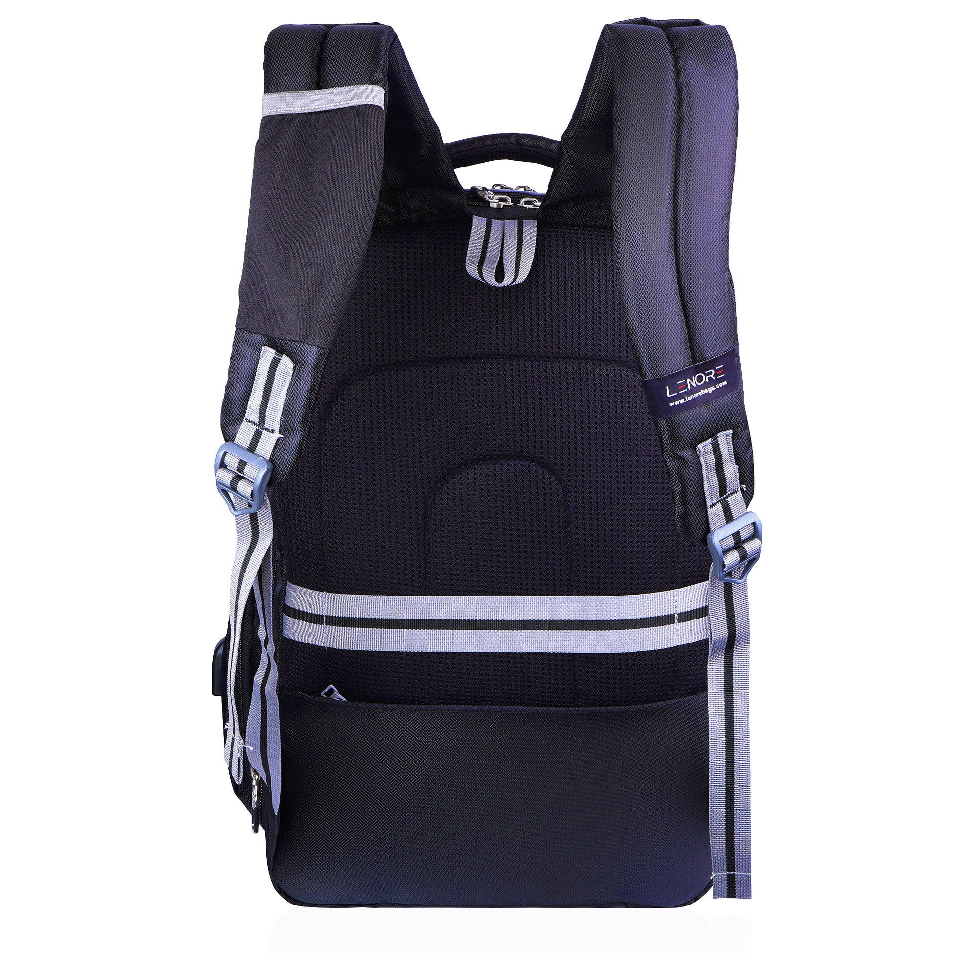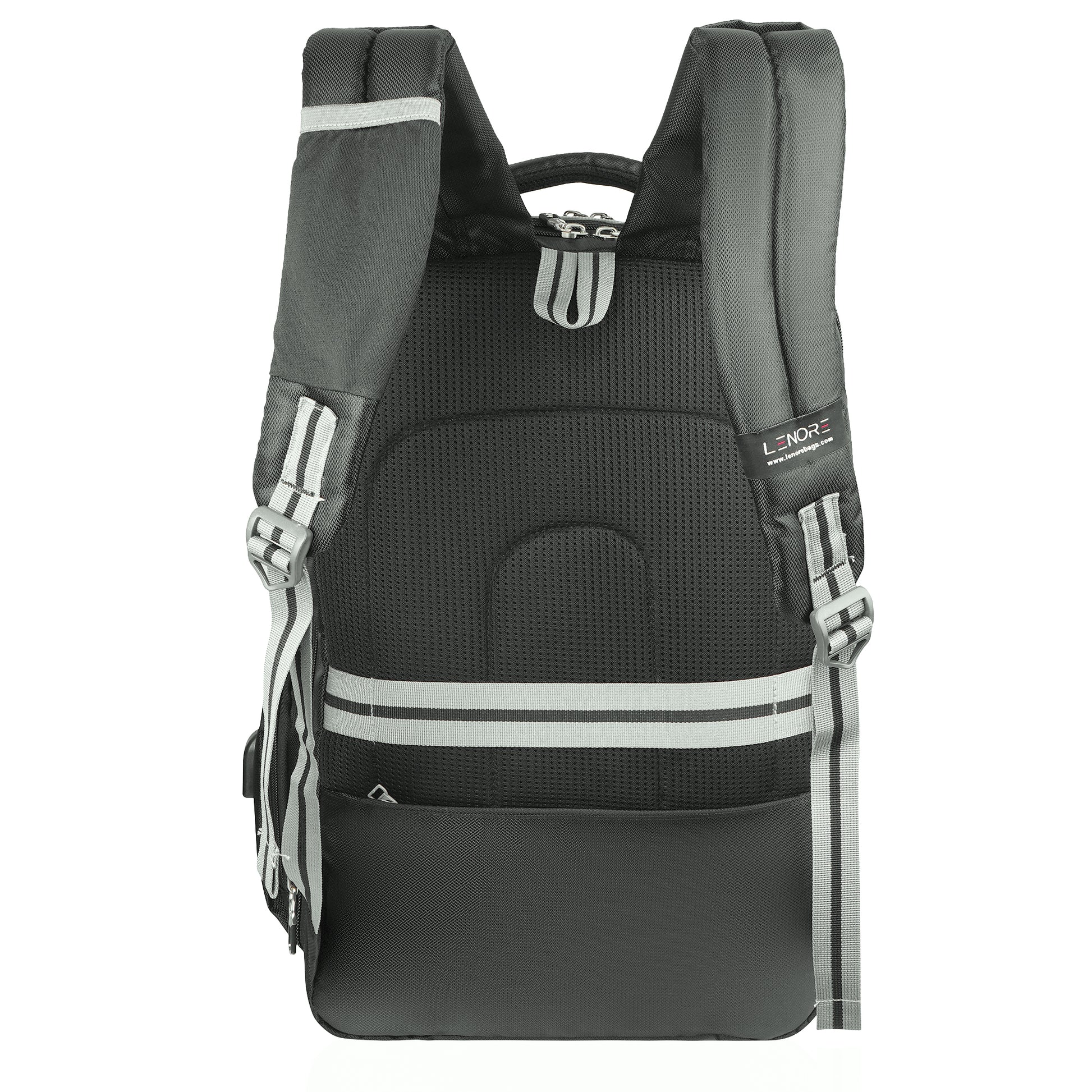 It has 3 main compartments, 1st with organizer 2nd for your files, documents or any other items like tiffin and the 3rd with padded Tablet & Laptop sleeve (max size 15.6 inches). In front there are 2 other pockets for easy access items. There are 2 pockets at side one for bottle and another zipper pocket which as usb plug. Mesh padding on back & shoulder straps for superior comfort to reduce the load on the shoulders. Suspension tractum shoulder belt to reduce weight while carrying bag. Bag also includes rain cover with dedicated pocket.