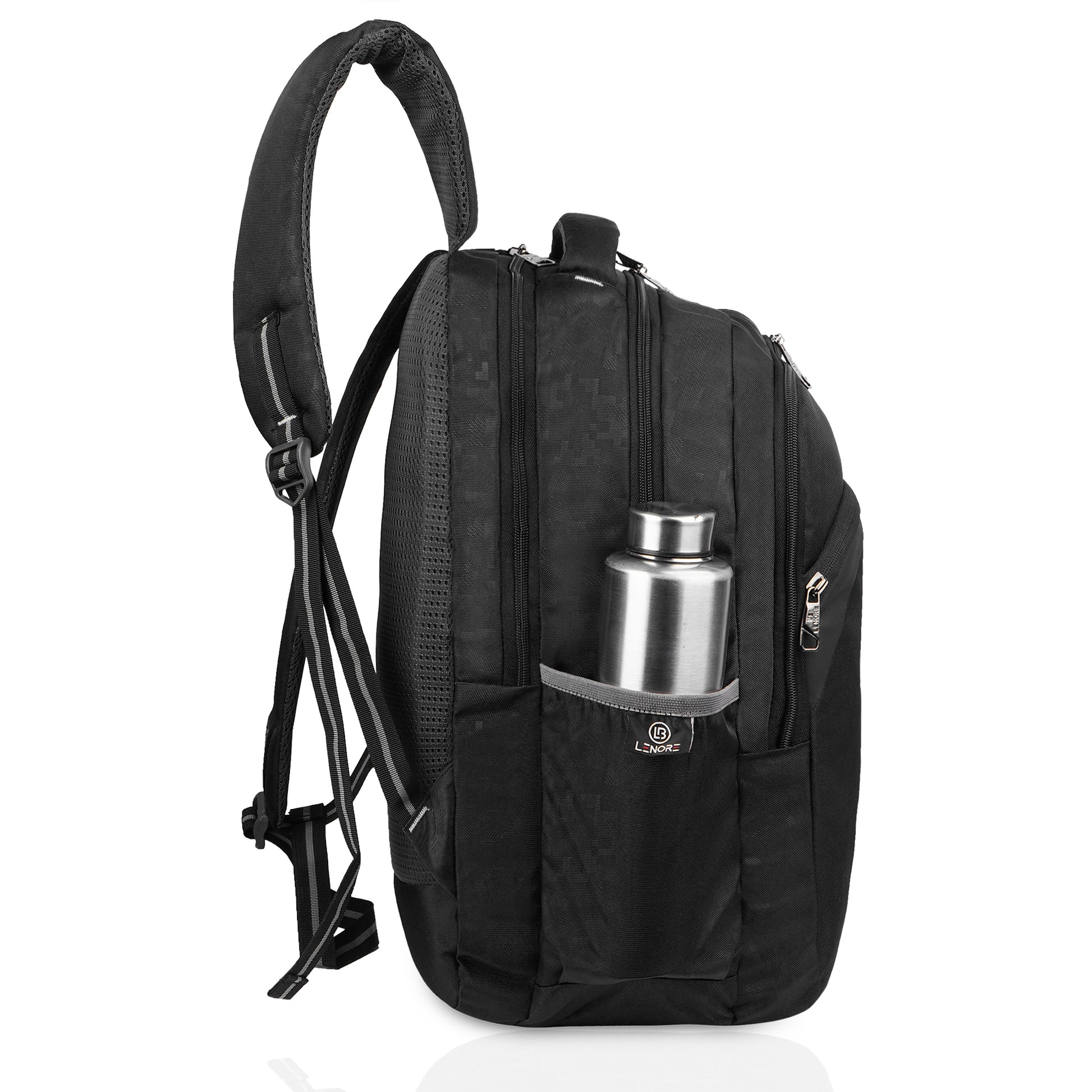 It has 3 main compartments, 1st with organizer 2nd for your files, documents or any other items like tiffin and the 3rd with padded Laptop and Tab sleeve (max size 15.6 inches). In front there are 2 other pockets for easy access items. There are 2 pockets for bottle. Mesh padding on back & shoulder straps for superior comfort to reduce the load on the shoulders.