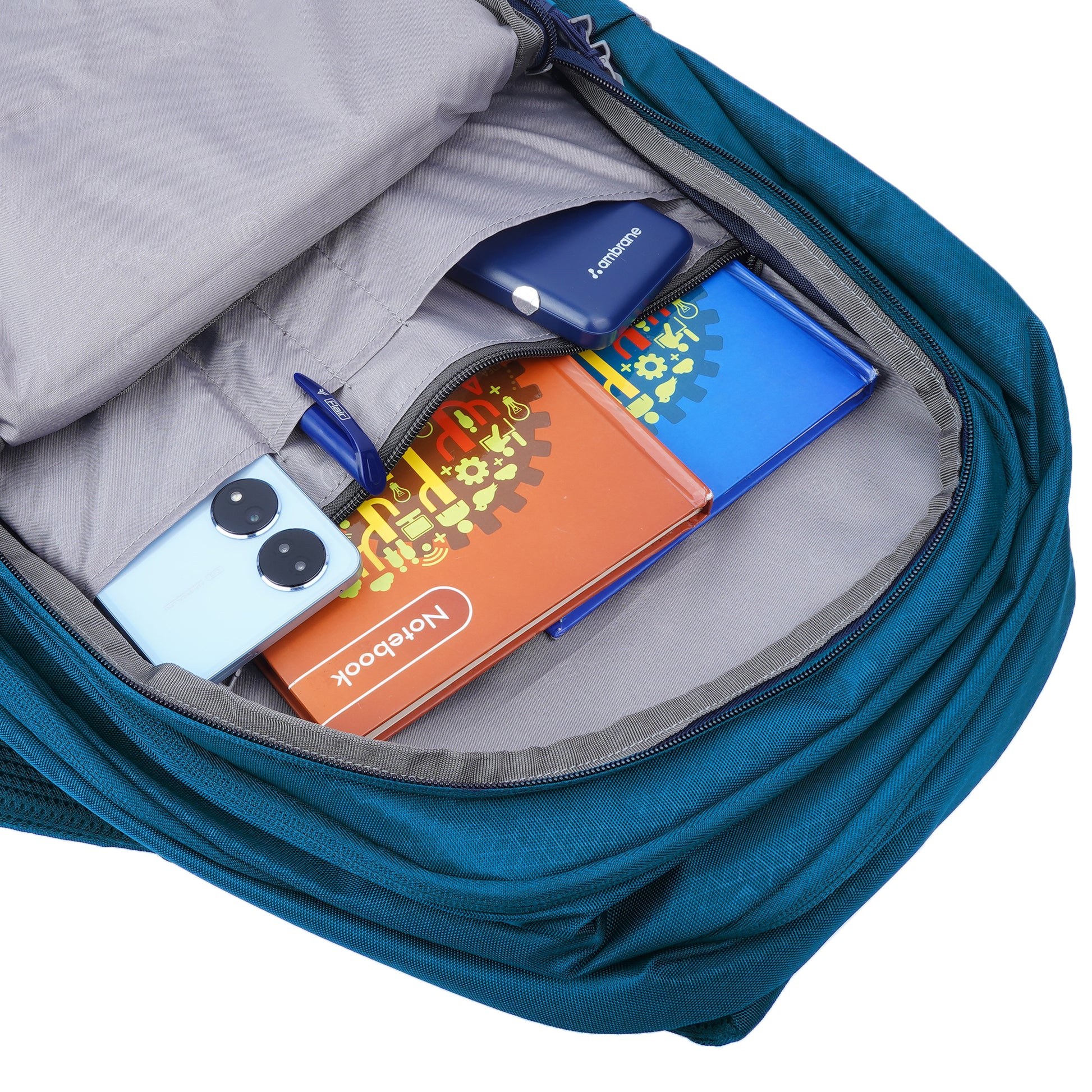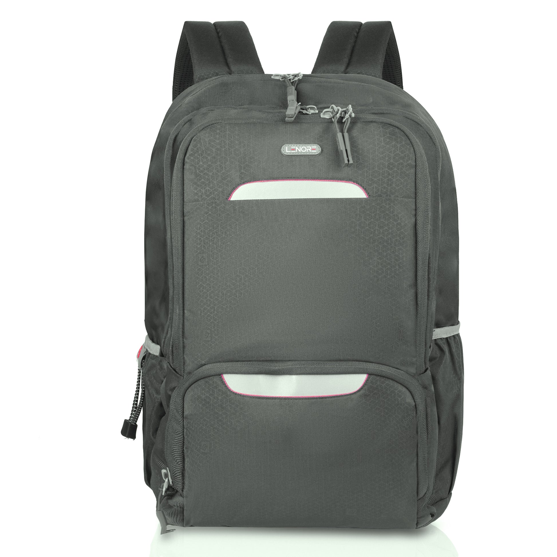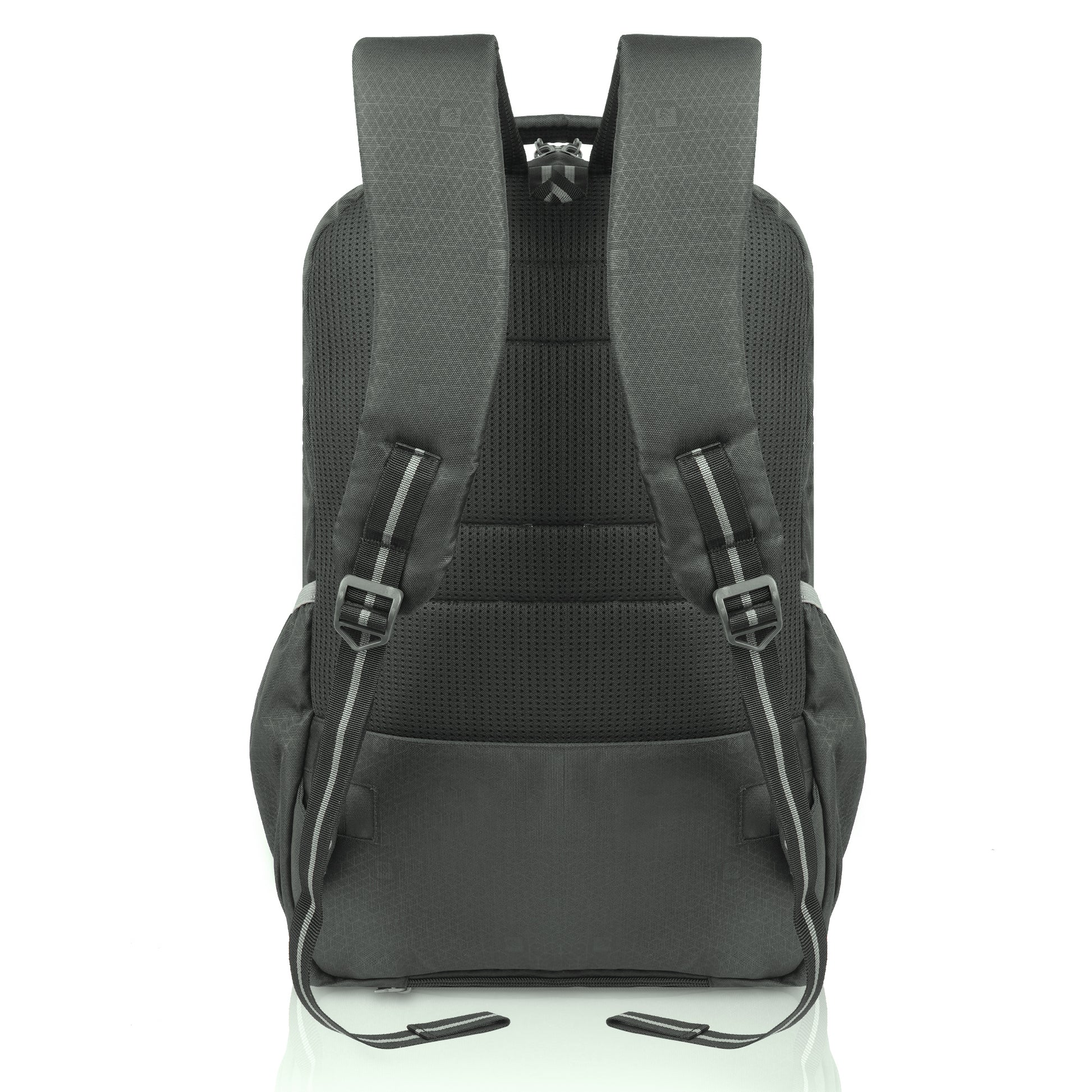 It has 3 main compartments, 1st with organizer 2nd for your files, documents or any other items like tiffin and the 3rd with padded Laptop and Tab sleeve (max size 15.6 inches). In front there are 2 other pockets for easy access items. There are 2 pockets for bottle. Mesh padding on back & shoulder straps for superior comfort to reduce the load on the shoulders.