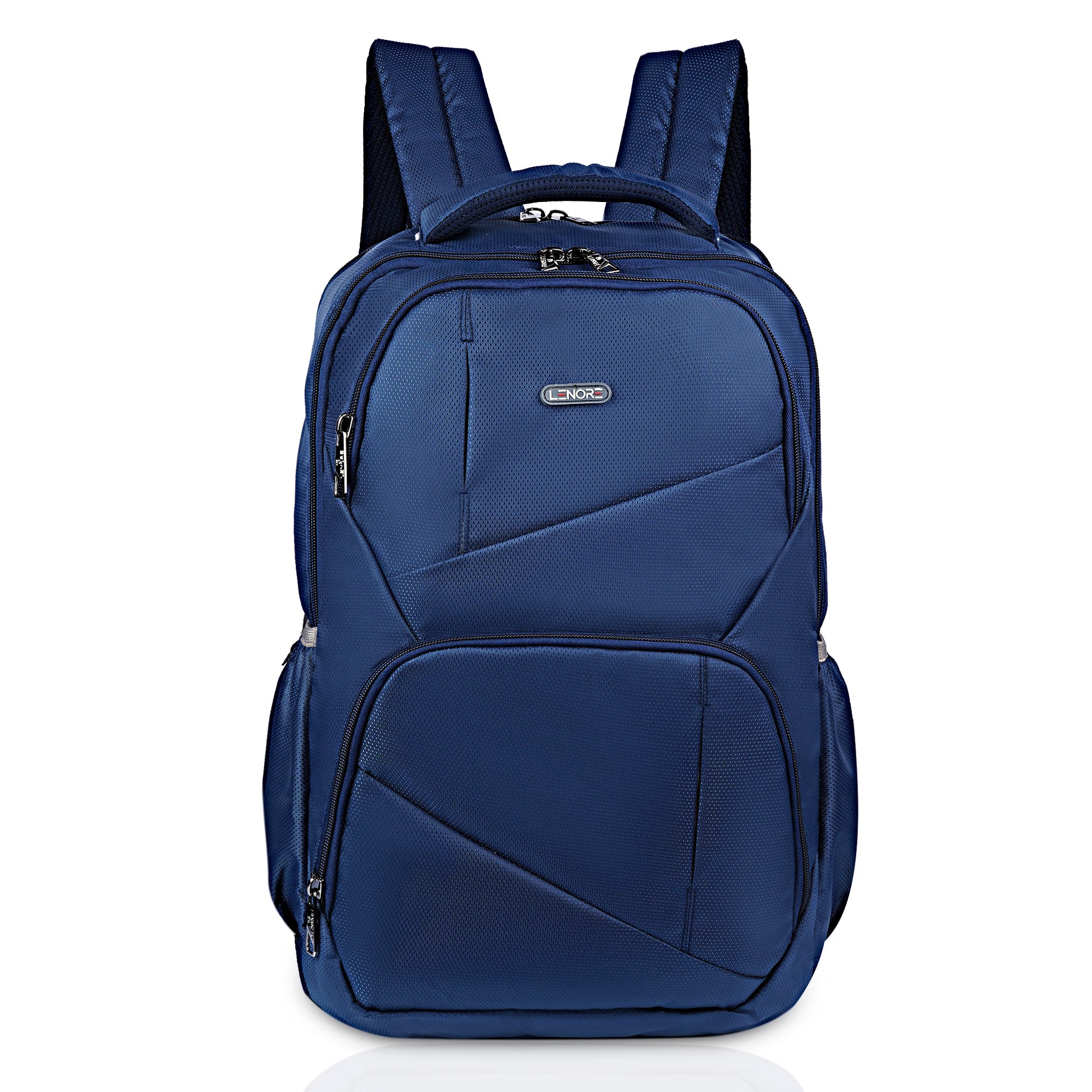 It has 3 main compartments, 1st with organizer 2nd for your files, documents or any other items like tiffin and the 3rd with padded Laptop and Tab sleeve (max size 15.6 inches). In front there are 2 other pockets for easy access items. There are 2 pockets for bottle. Mesh padding on back & shoulder straps for superior comfort to reduce the load on the shoulders.
