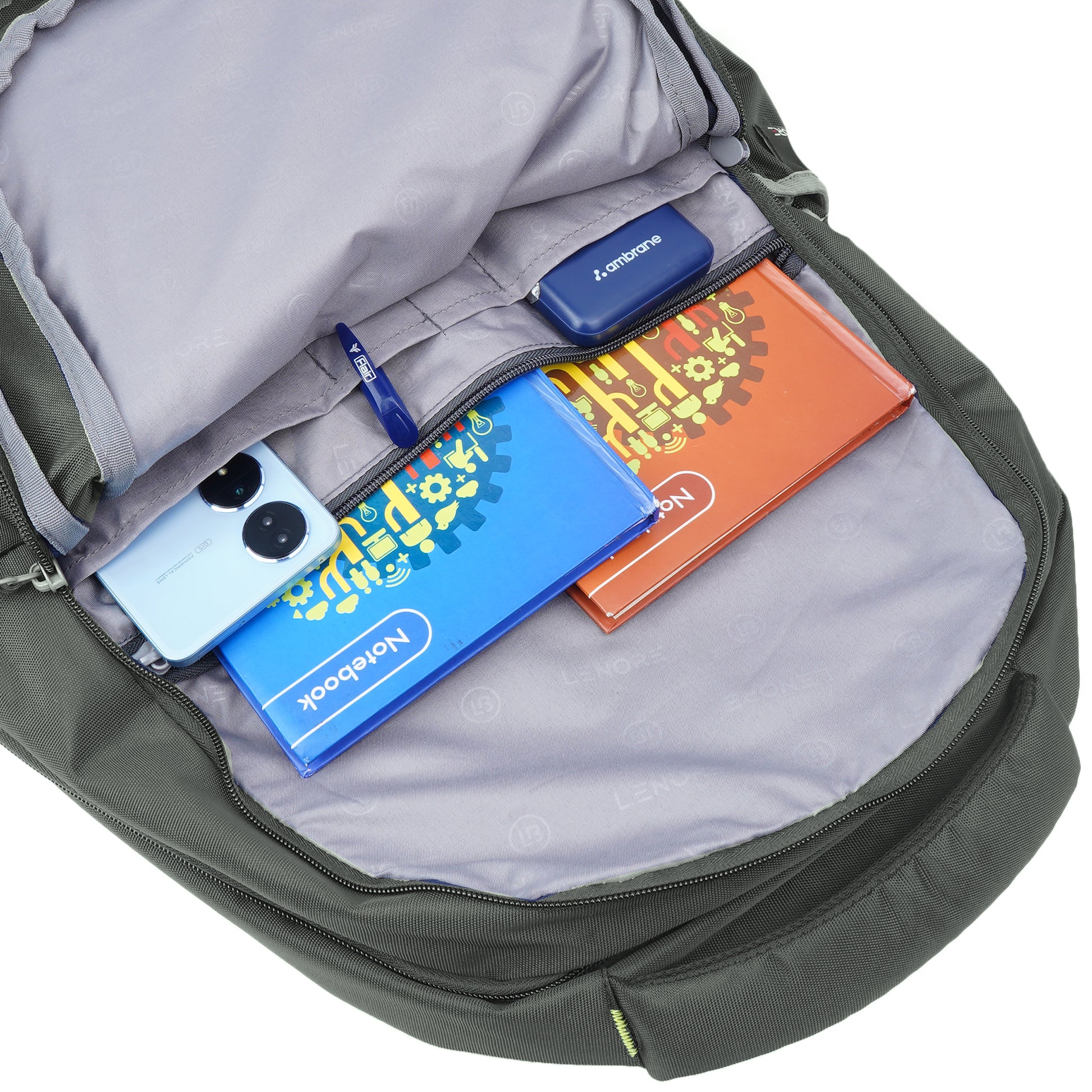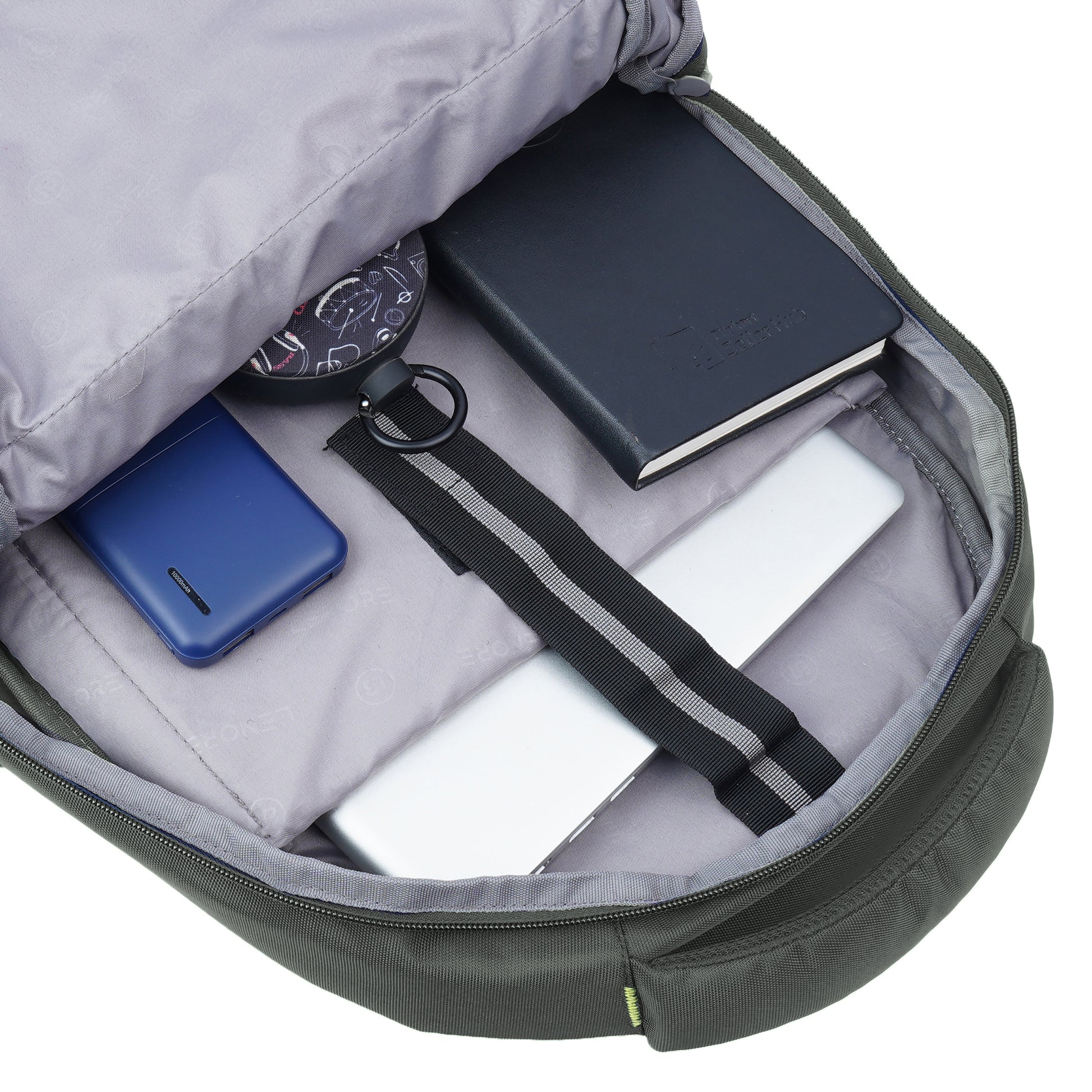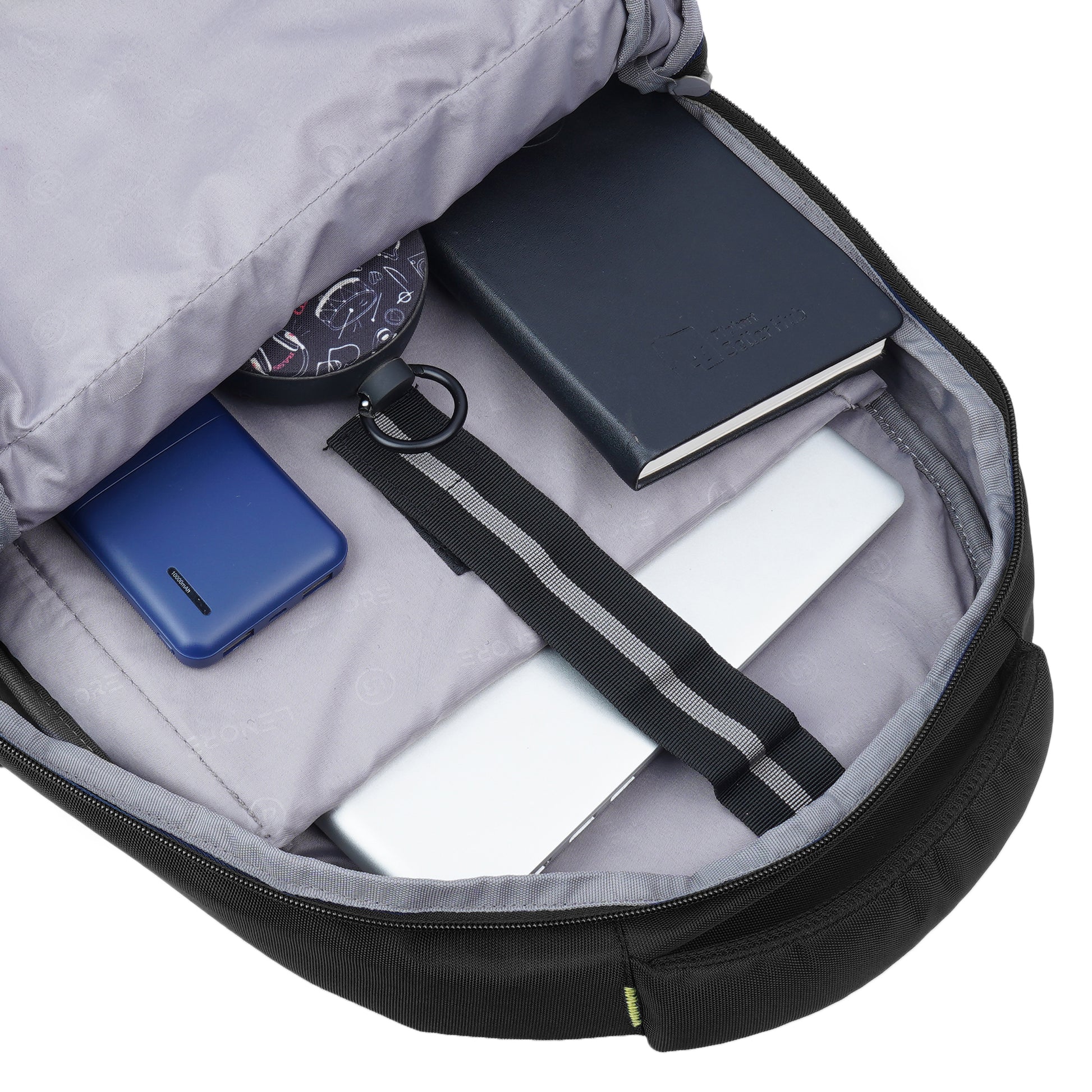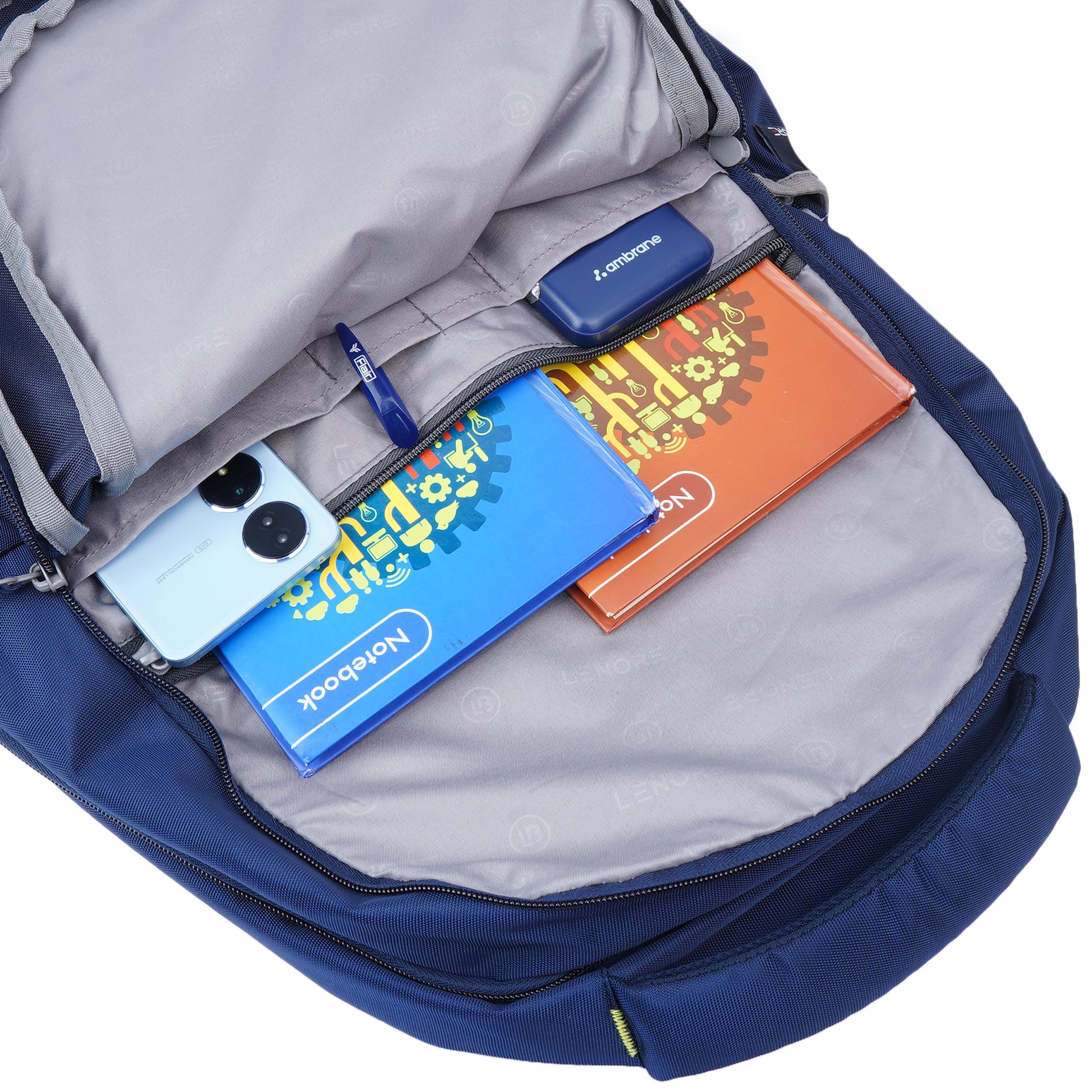 It has 3 main compartments, 1st with organizer 2nd for your files, documents or any other items like tiffin and the 3rd with padded Laptop and Tab sleeve (max size 15.6 inches). In front there are 2 other pockets for easy access items. There are 2 pockets for bottle. Mesh padding on back & shoulder straps for superior comfort to reduce the load on the shoulders.
