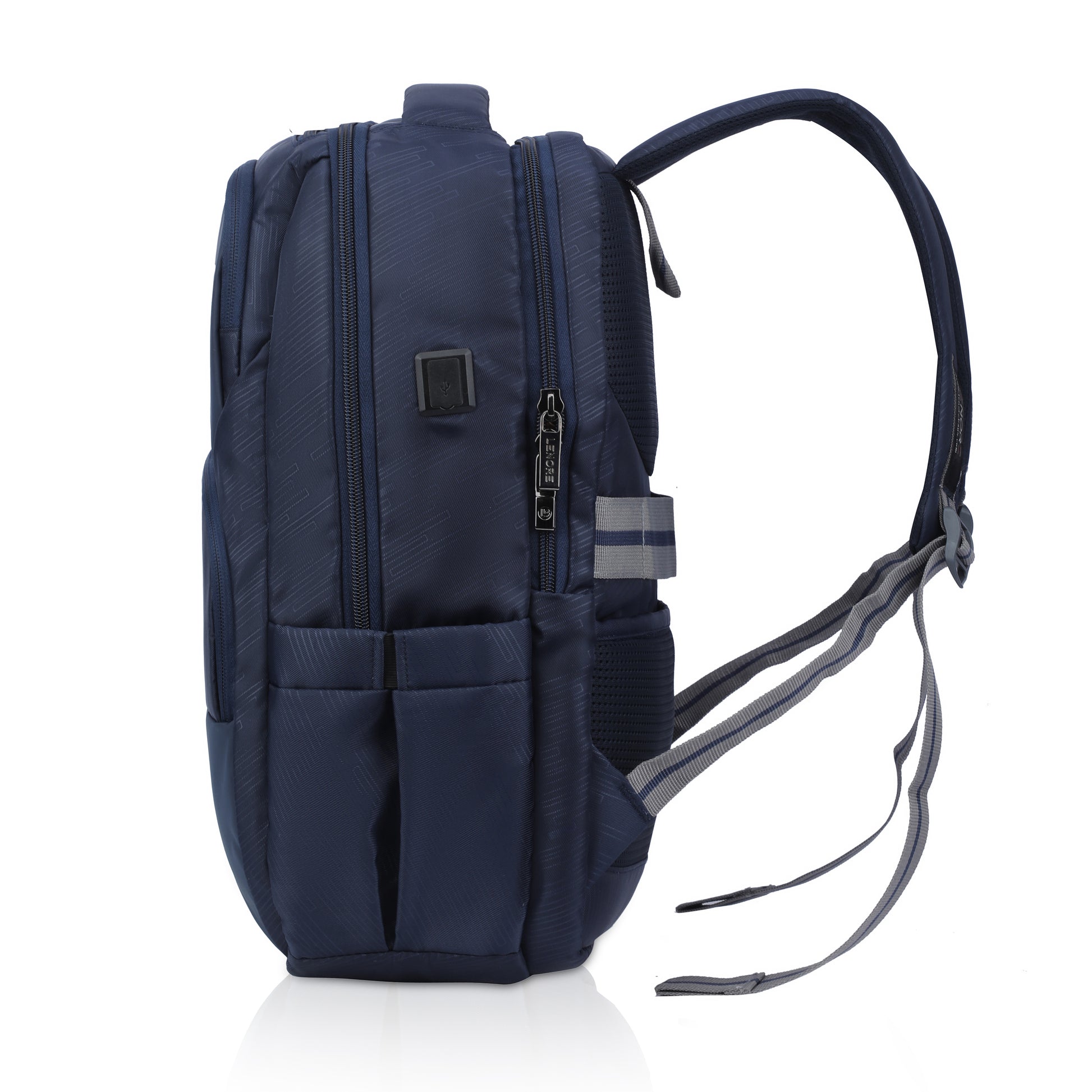 Lenore Laptop Backpack LBP-136 – A perfect blend of style and functionality for your daily commute. It features two spacious compartments, including a padded laptop section for secure storage, plus bottle pockets, organizer pocket with key holder, easy-access front pocket, and a top pocket for spectacles. Stay powered on the go with built-in USB charging, while the trolley strap and hidden back pocket add travel convenience. With padded straps and back support, LBP-136 ensures comfort, organization, and protection—ideal for students and professionals alike.