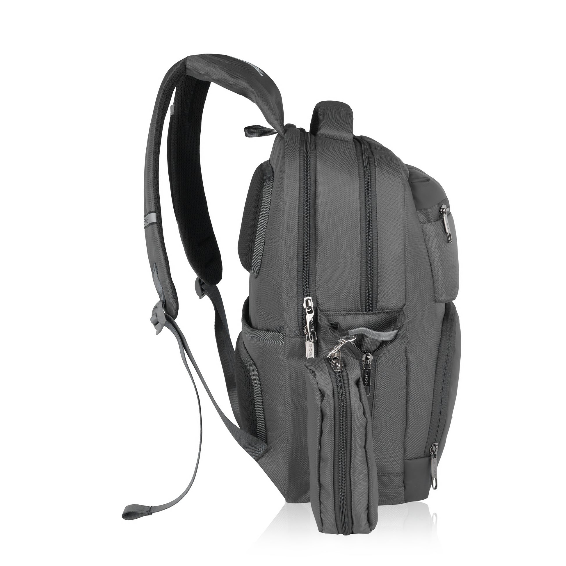The Lenore Laptop Backpack – LBP-147 is engineered for professionals seeking reliable daily carry. Its dual-compartment design separates your laptop from accessories, documents, and lunch essentials, while two front quick-access pockets streamline your workflow. Side zipper and bottle pockets provide convenient storage for on-the-go items. The advanced air-mesh back panel with cushioned support ensures breathability and comfort during extended wear, complemented by an elastic traction shoulder belt that intelligently redistributes load pressure. A hidden security pocket safeguards valuables, while the integrated trolley sleeve pairs seamlessly with luggage. The shoulder belt features a dedicated sunglasses pocket for easy access. This backpack arrives with a protective rain cover and bonus pouch, delivering comprehensive protection for your gear.