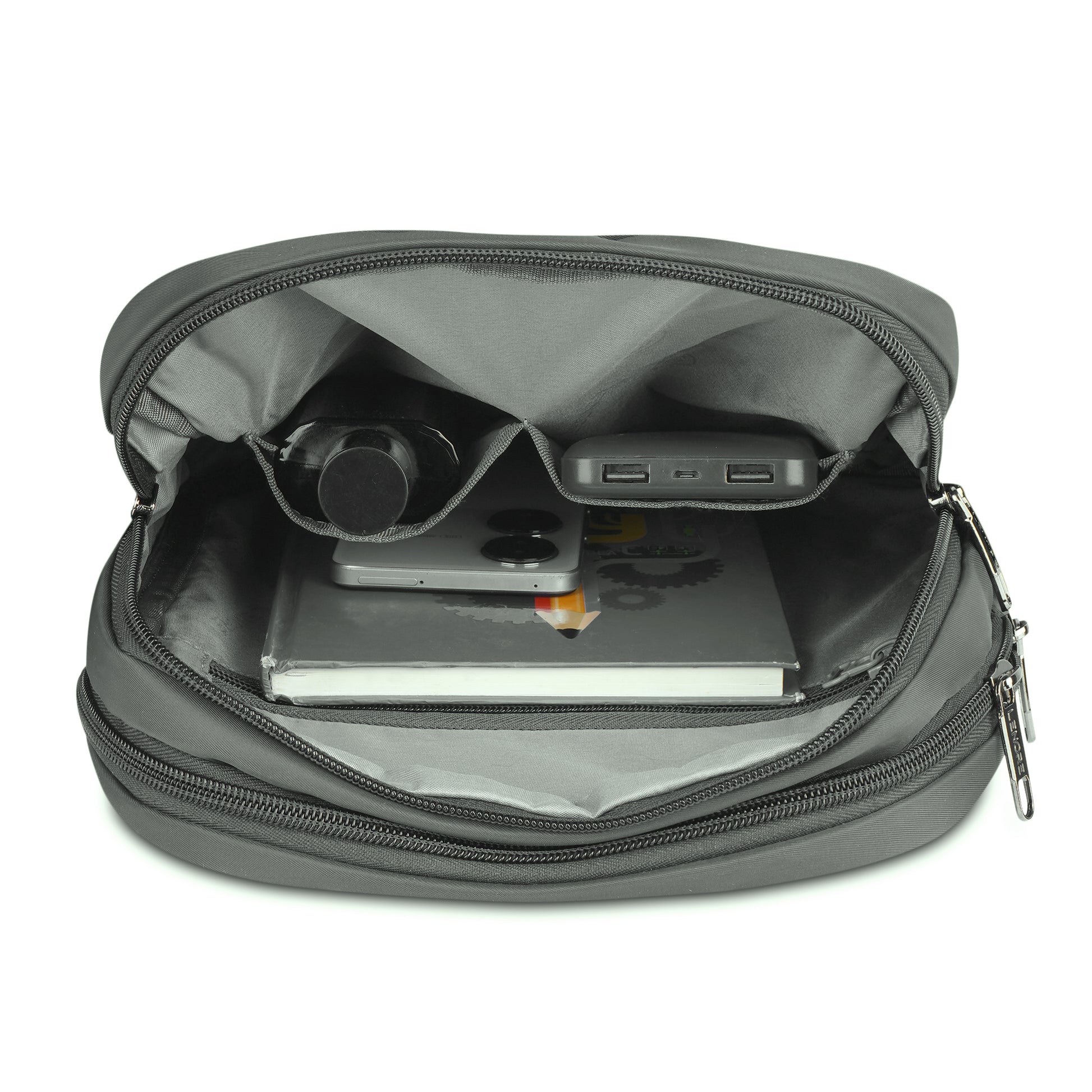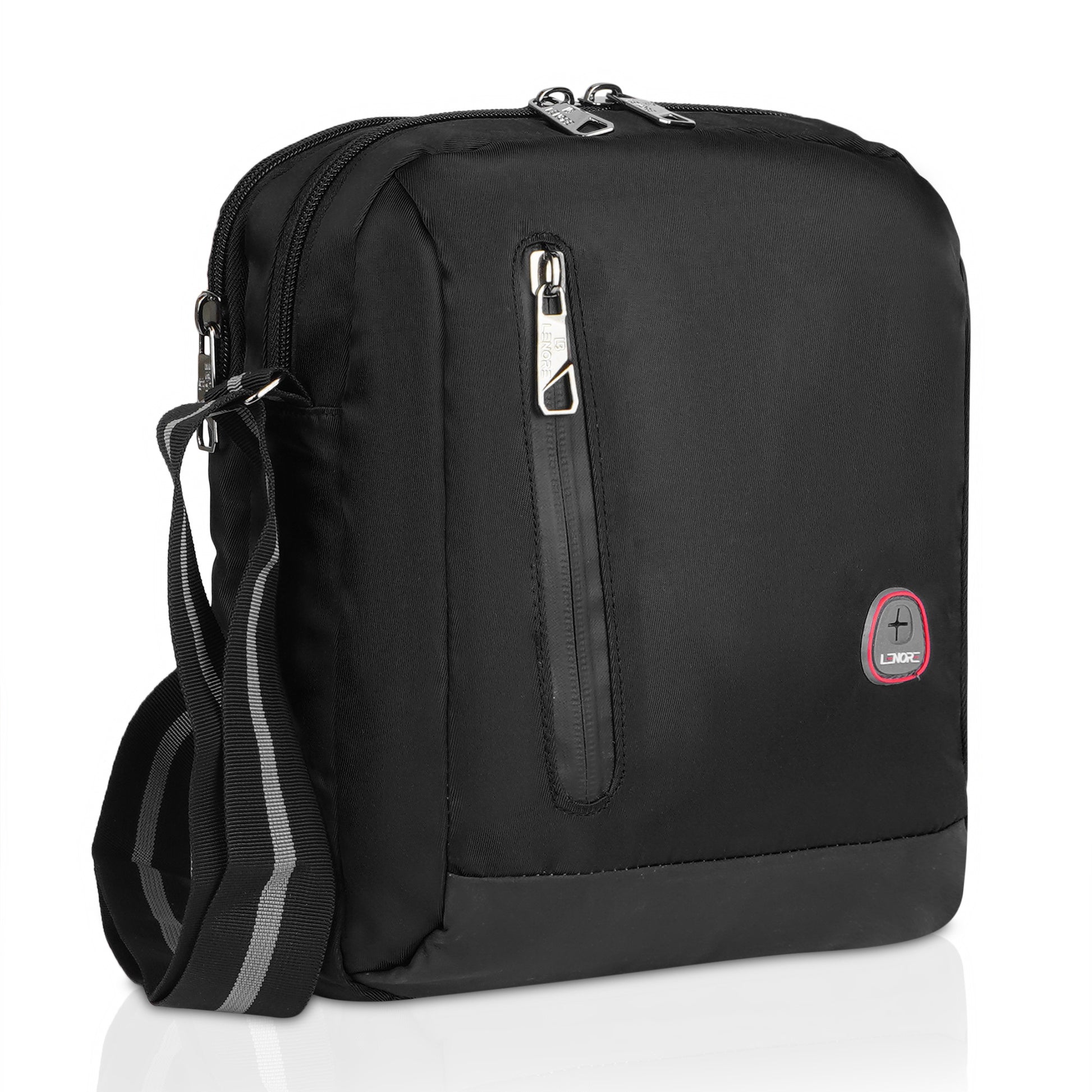 This sling bag has a very unique design and it has a very cool feature, the brand label on it can also be used to pass the wire of your earphone or other such cable which can be accessed through the front zipper pocket. It has 2 main compartments, one with organizer and a zipper pocket for your valuable items and other with a padded tab sleeve. At the back also there is a zipper pocket for easy access items. It comes with a strong comfortable and adjustable shoulder strap