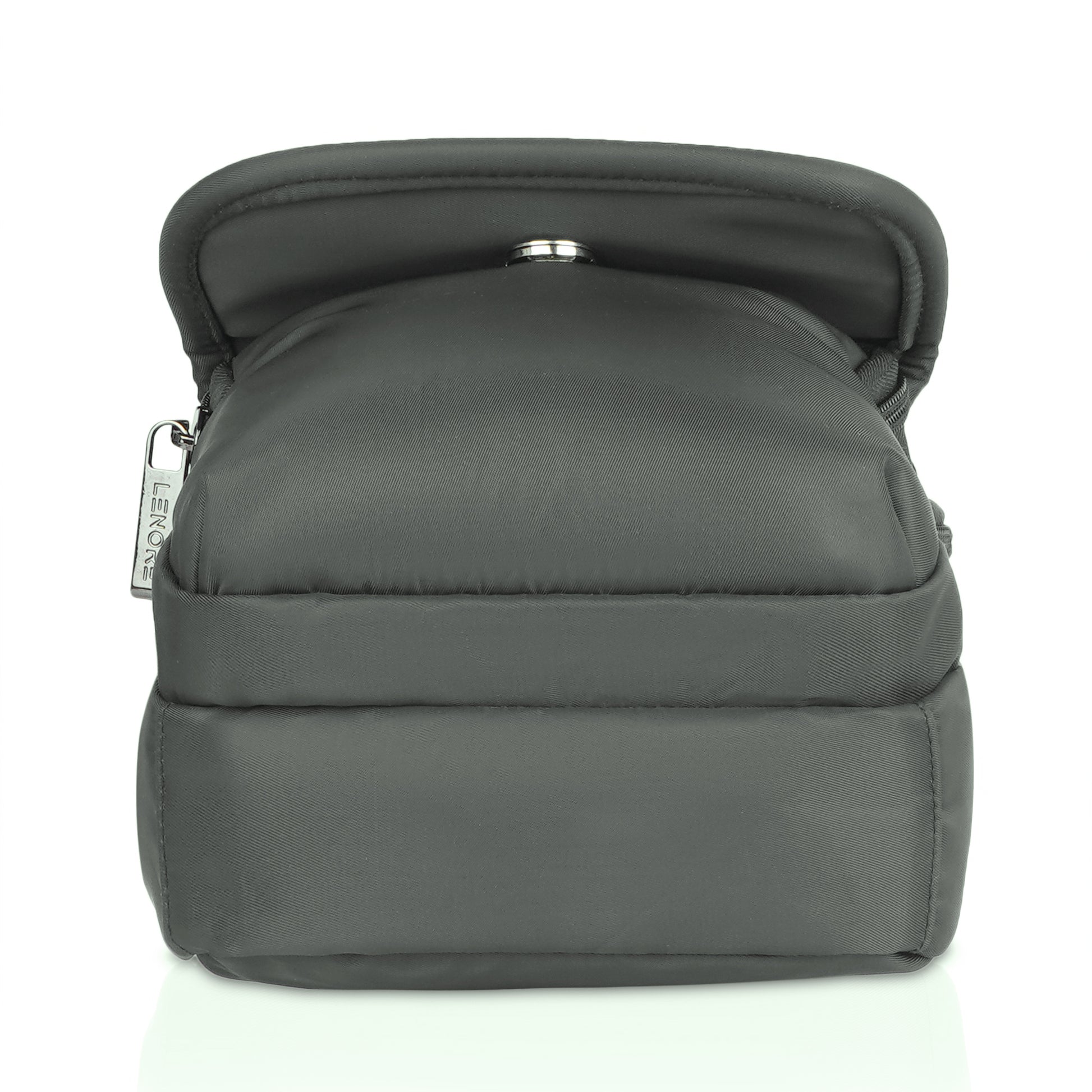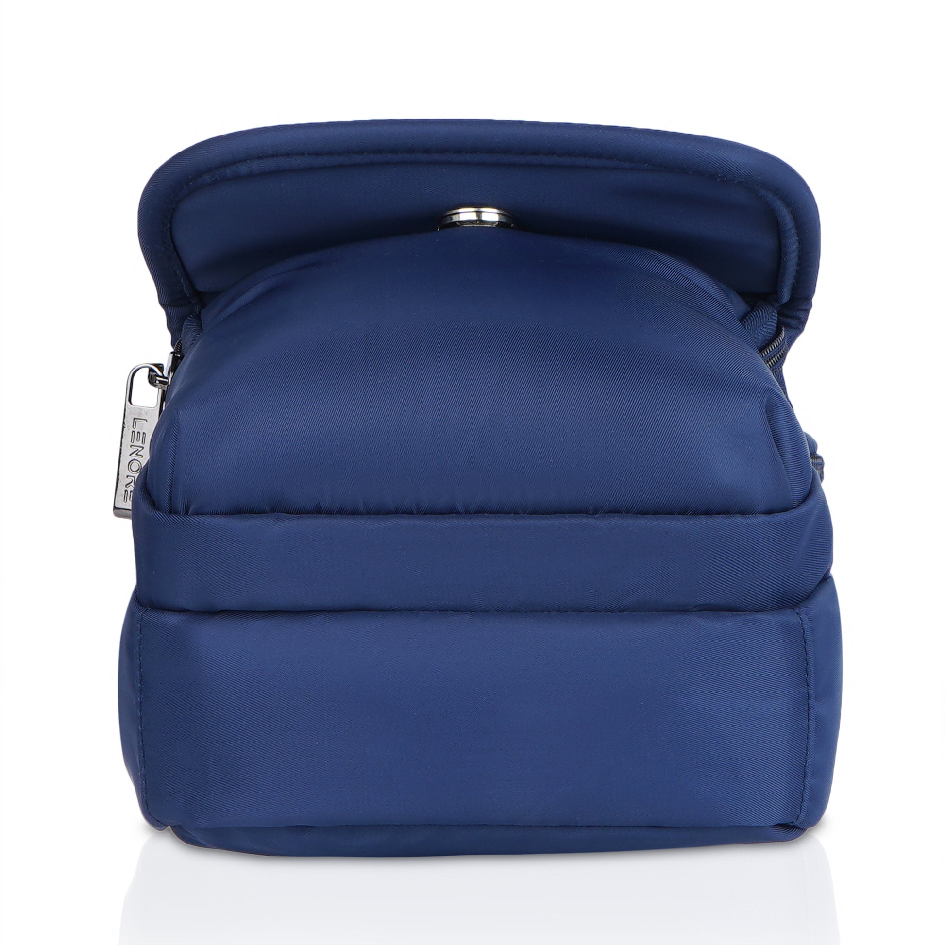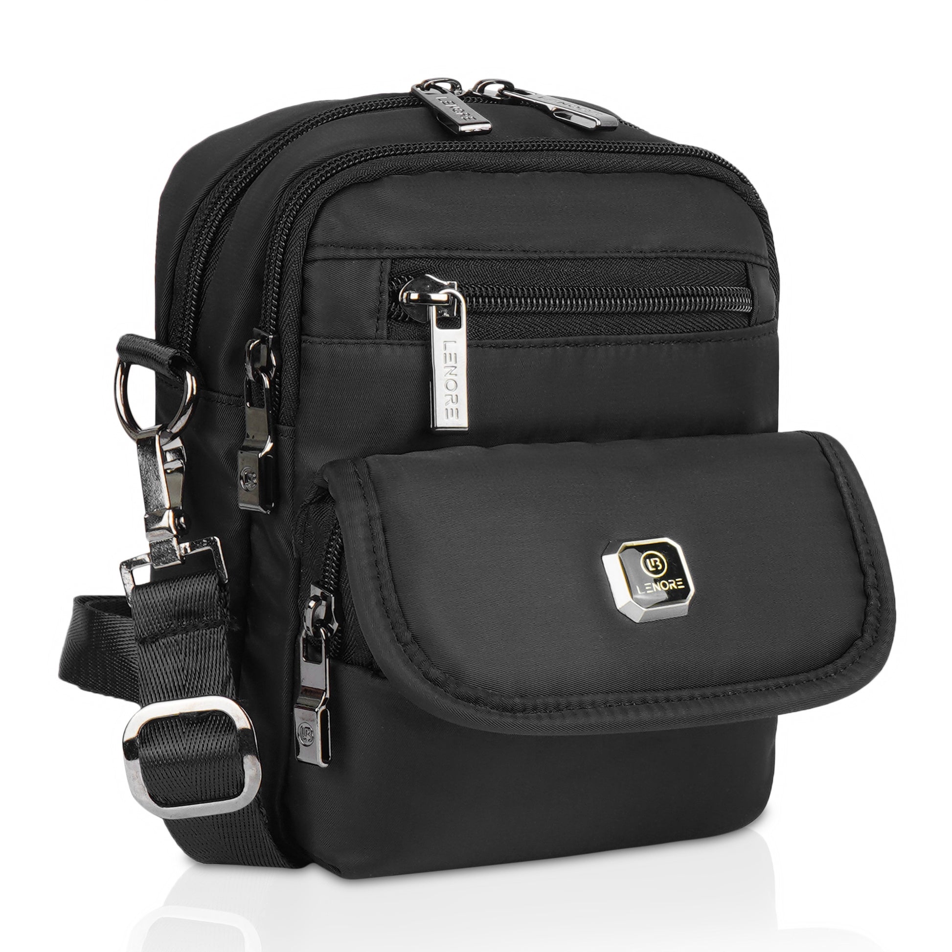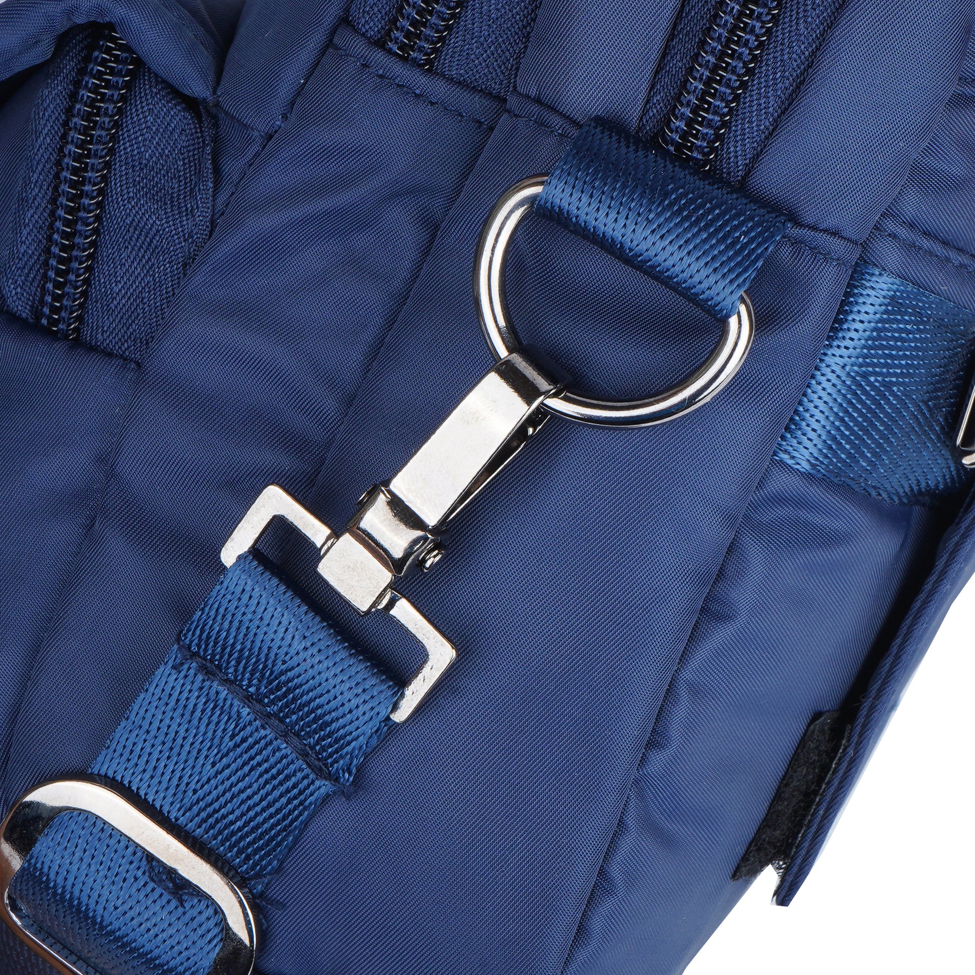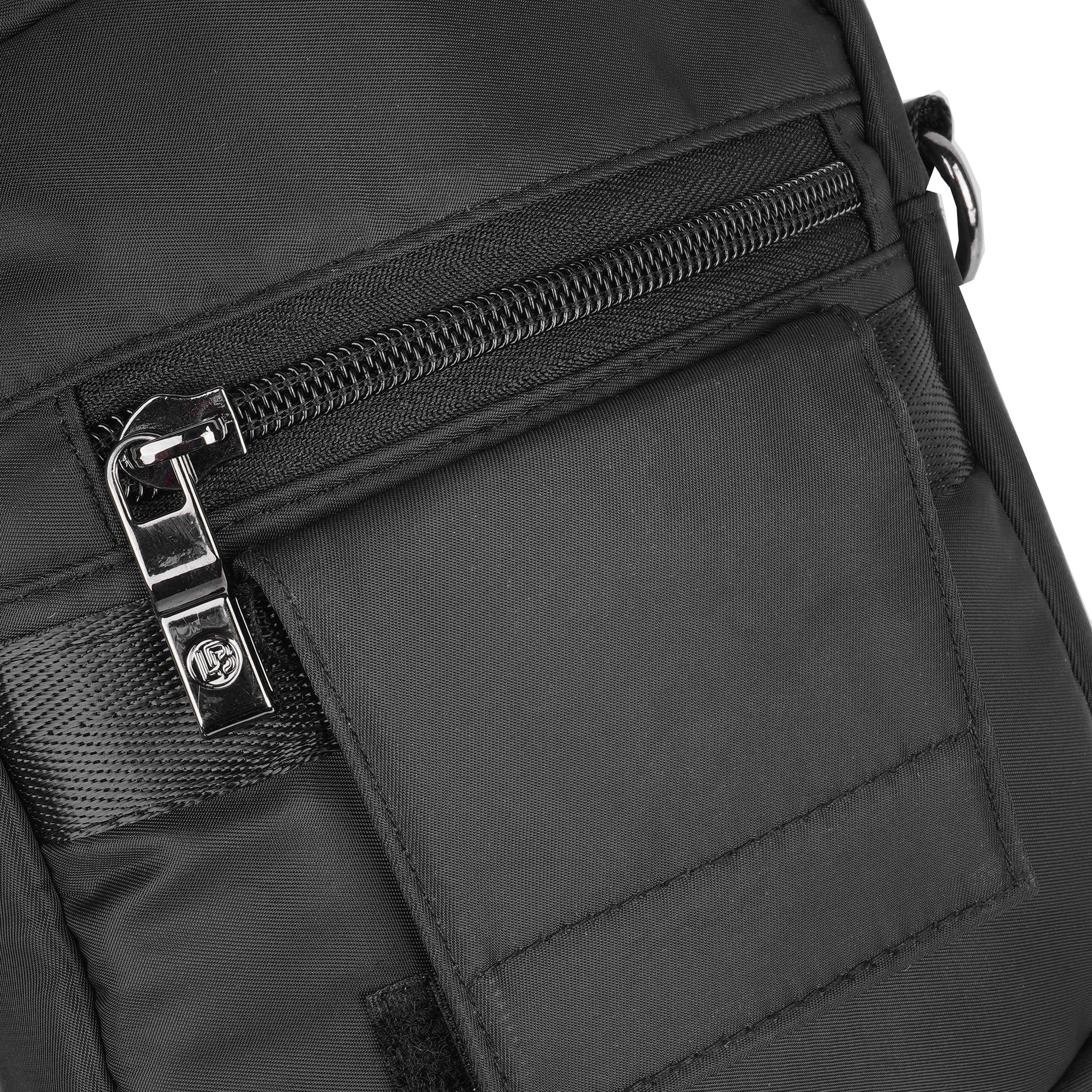 This sling bag has 2 main compartments, one with organizer for easy access items and a zipper pocket for your valuable items and other with padded tab sleeve. In the front there is a flap over with a zipper pocket on it and below the flap over there are 2 other zipper pockets to organize other miscellaneous items. At the back also there is a zipper pocket for easy access items. It comes with adjustable and comfortable shoulder strap.